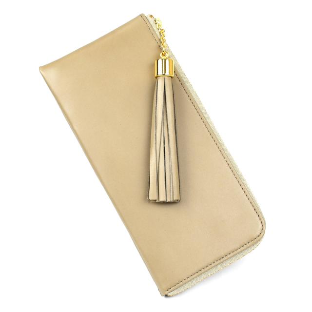 タッセルウォレット スムースレザー L-GRAY 日本製 長財布 L字ファスナー 外ポケット付き 外側 小銭入れ 本革 財布 レディース 革 レザー 薄い 薄型 使いやすい YKK 長サイフ ロングウォレット Tassel Wallet タッセル チャーム 送料無料 NNW02 グレージュ