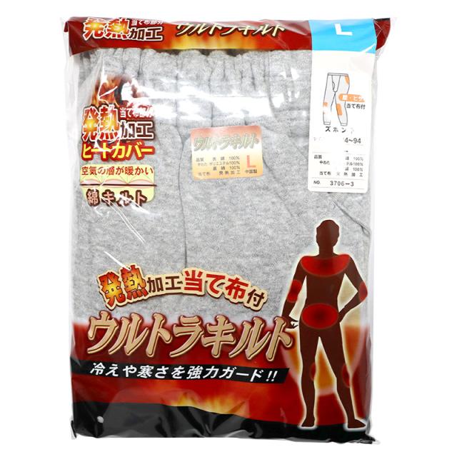 インナー ウルトラキルト ズボン下 メンズ グレー L スラックス ボトムス インナーボトム ももひき 股ひき 肌着 ロング丈 男性 シニア 高齢者 暖かい あったか あったかい 防寒 防風 保温 ヒートインナー 冬用インナー 冬 綿100% 灰色 送料無料 CNJA3706L