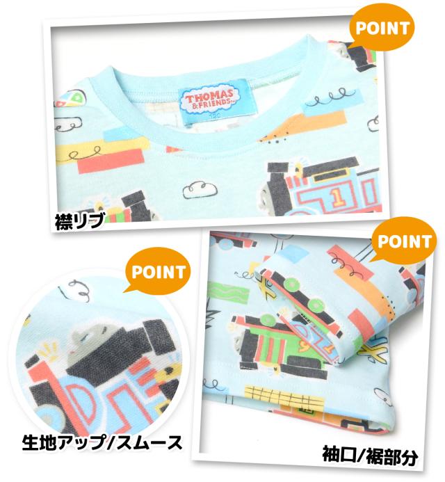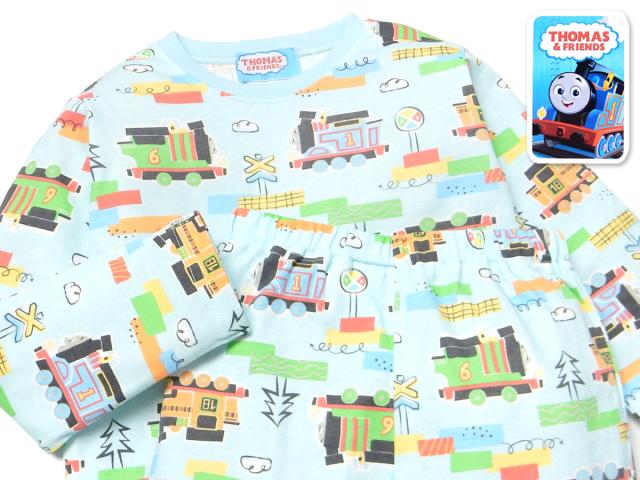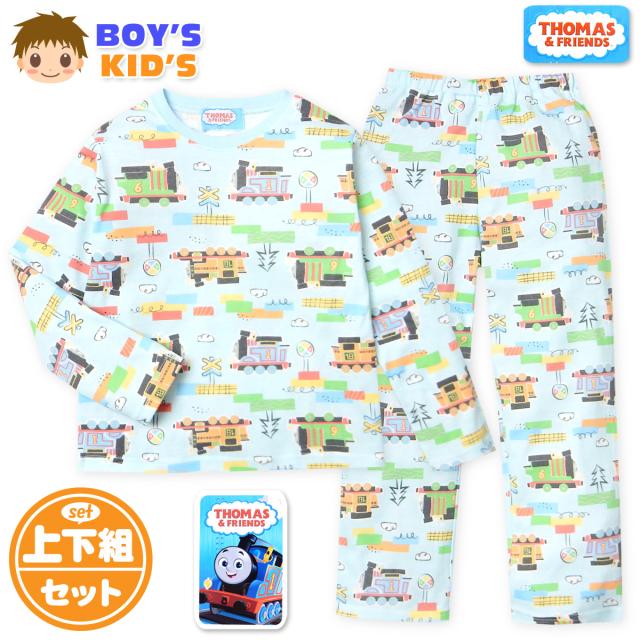 【送料無料】男児 キッズ スムース 長袖 パジャマ きかんしゃトーマス 上下組 総柄プリント 子供服 男の子 100cm 110cm 120cm 130cm td-0868【メール便対応】
