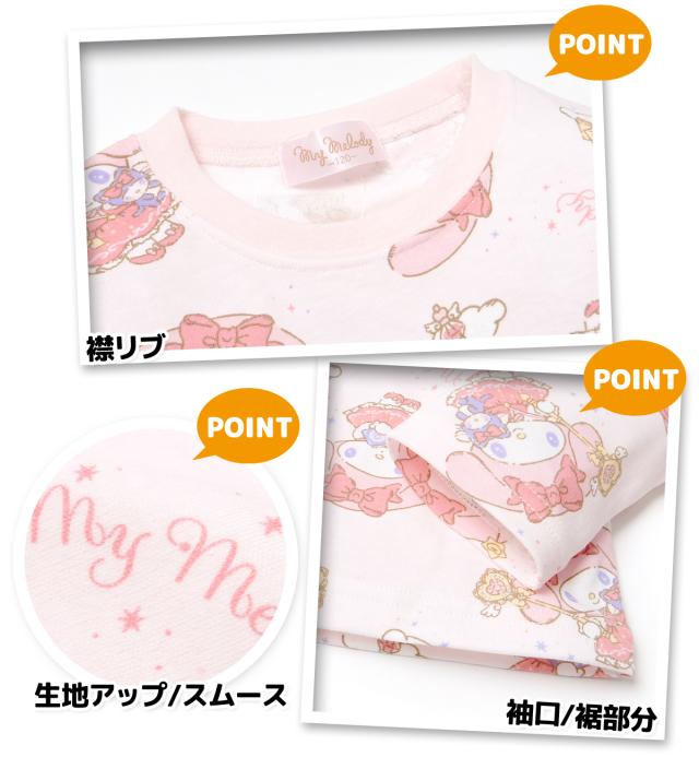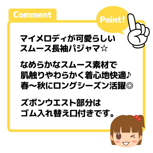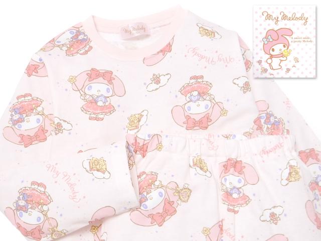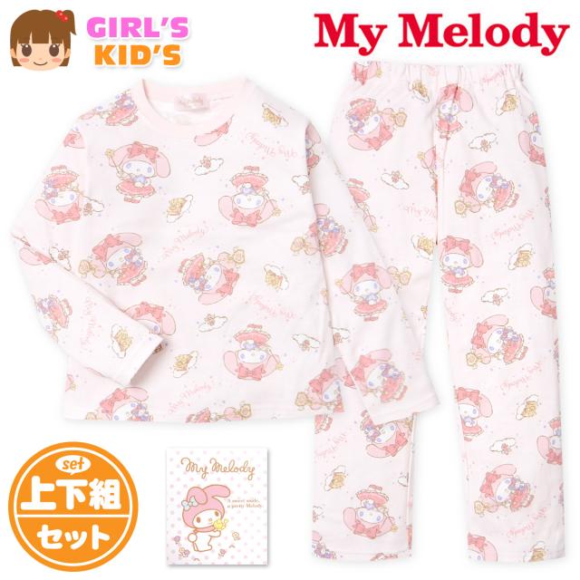 【送料無料】女児 キッズ スムース 長袖 パジャマ Sanrio サンリオ マイメロディ 上下組 総柄プリント 子供服 女の子 100cm 110cm 120cm 130cm td-0864【メール便対応】