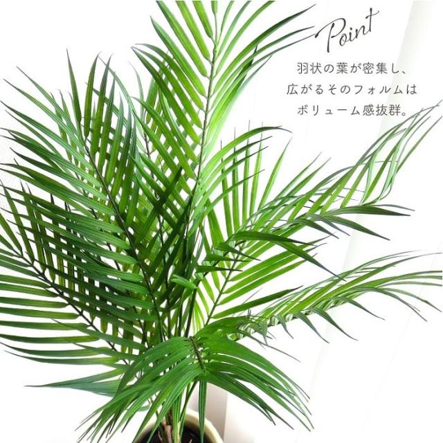 羽状の葉が密集し広がるそのフォルムがボリューム感抜群のアレカパームツリーポットが登場。