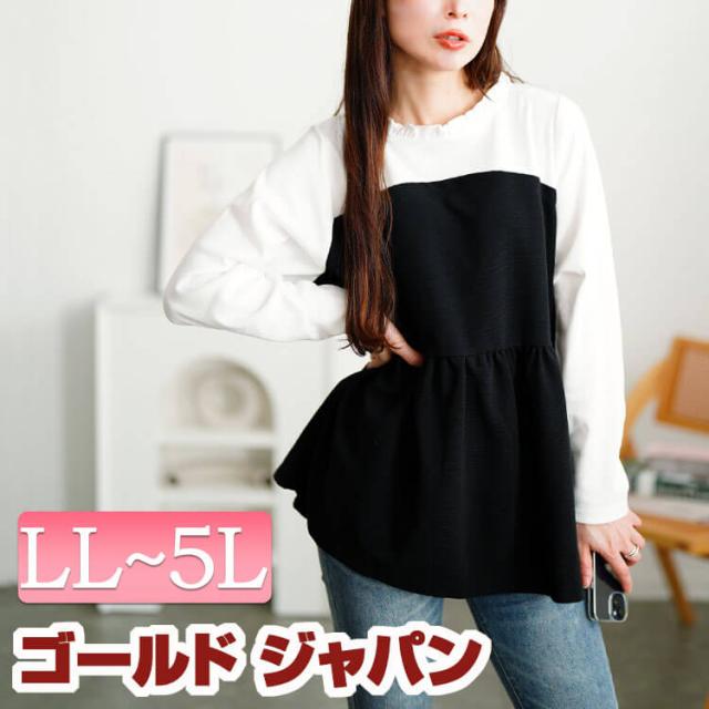 春新作 大きいサイズ レディース チュニック ビスチェドッキングフリルネックチュニック 長袖チュニック 長袖 ビスチェ ペプラム フレア ドッキング フリルネック フリル ギャザー ロング ストレッチ ゆったり 春服 秋服 冬服 LL 2L 3L 4L 5L ブラック 黒 ゴールドジャパン