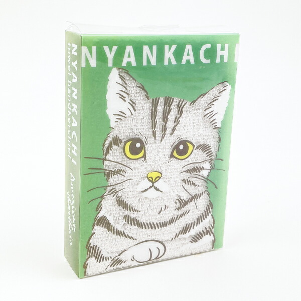 にゃんかち アメリカンショートヘア ハンカチ タオル グレー