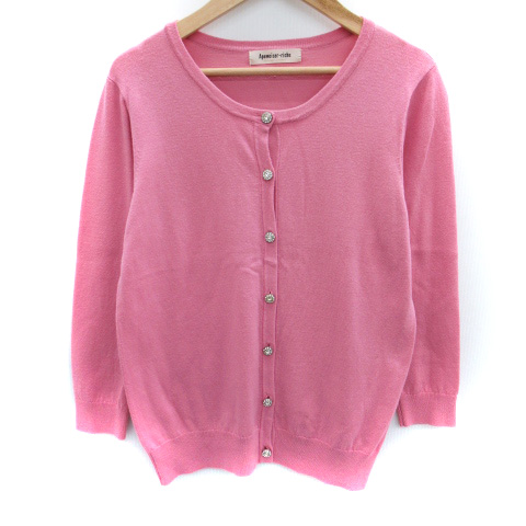 【中古】アプワイザーリッシェ ニットカーディガン ミドル丈 ラウンドネック 七分袖 ビジュー 2 ピンク