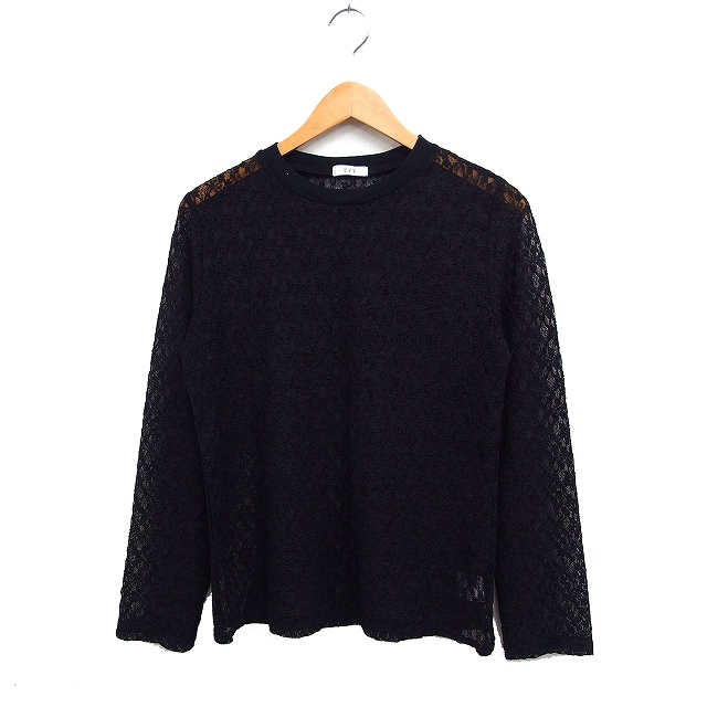 【中古】アー・ヴェ・ヴェ ミッシェルクラン a.v.v シアーレース 総レース カットソー Tシャツ 長袖 丸首 L ブラック