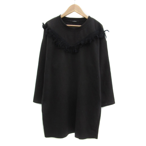 【中古】ダブルクローゼット ワンピース ミニ 長袖 ラウンドネック フリンジ オーバーサイズ F ブラック レディース