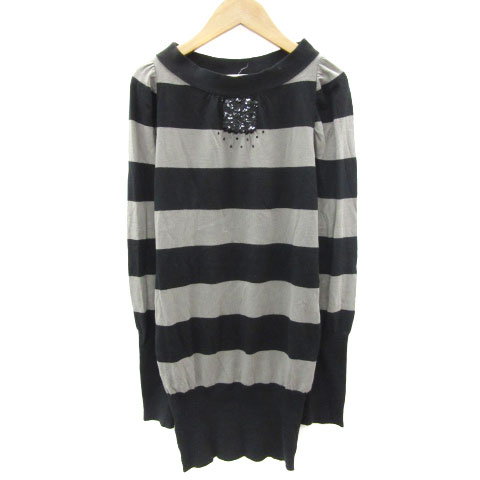 【中古】レベッカテイラー rebecca taylor ニットチュニック 長袖 ボーダー柄 スパンコール 2 ブラック レディース