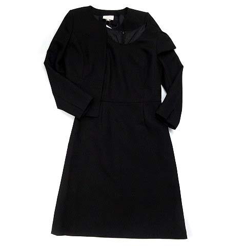【中古】未使用品 エマジェイムス EMMAJAMES スーツ セットアップ ノーカラージャケット ワンピース 黒 ブラック 9 レディース