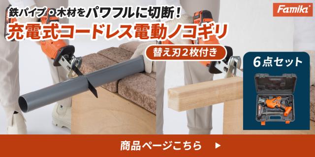 | 商品名 | 充電式コードレスのこぎり6点セット(替え刃2枚付き)+予備バッテリー付き |