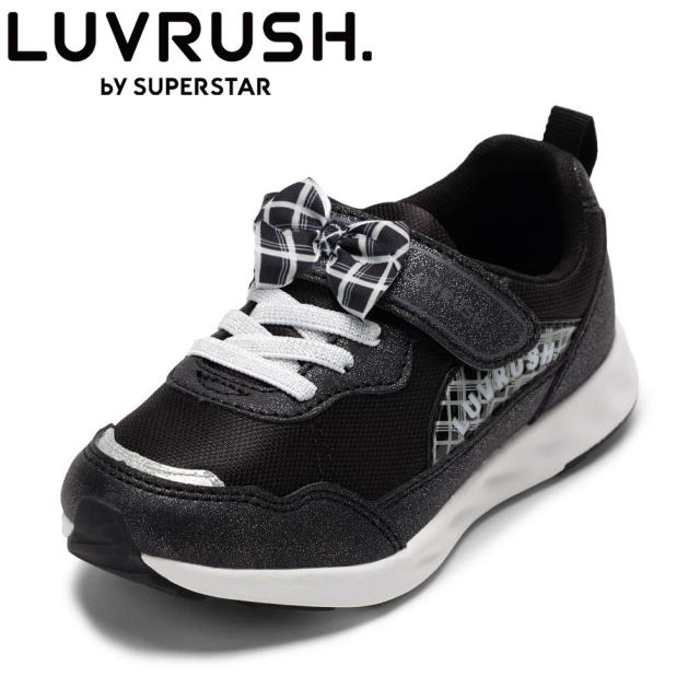 ラブラッシュ LUVRUSH LV 1206 キッズ靴 靴 シューズ 2E スニーカー ローカットスニーカー リボン 面ファスナー かわいい おしゃれ チェック キュート ブラック