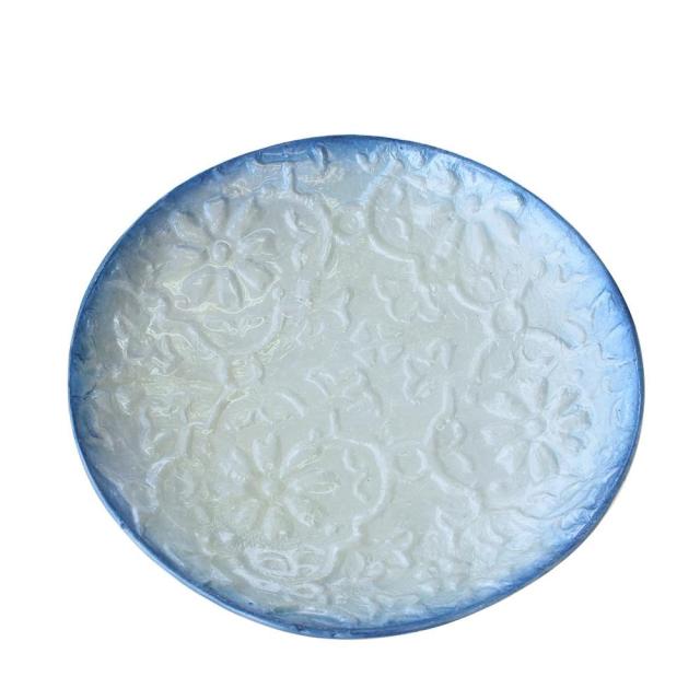 ラウンドカピストレイ エンボス リタ ブルー 19519810166 エンボス加工の模様が美しい。