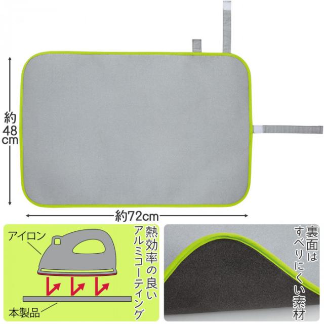 | サッと広げてすぐ使えるアイロンマット、くるりん。アイロン台は重くて出し入れが大変…かさばって収納場所をとる…くるりんなら、軽くて場所をとらず、サッと広げてすぐ使えます。使用後はくるっと巻いて面テープで固定し、クローゼットのポールなどに掛けて収納できます。コンパクトで持ち運びもラクラク♪表面は熱効率の良いアルミコーティング、裏面はすべりにくい素材です。ハンカチや布マスク、すそ上げやパッチワークなどに。 ※熱に弱いビニールクロスやガラステーブル、漆やニスなどの塗装を施したテーブル、畳・じゅうたん・フローリングなど燃えやすいものの上では絶対に使用しないでください。 ※必ずタオルを敷いてご使用ください。 |