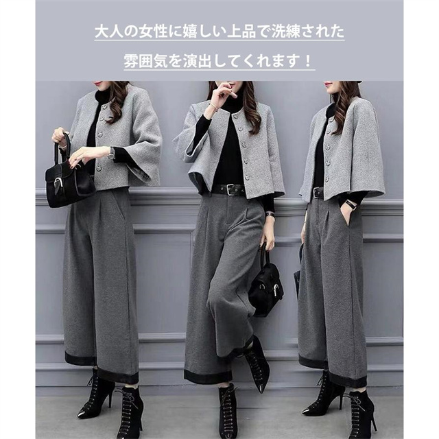 セットアップ 卒業式 スーツ 入学式 レディース フォーマルスーツ 母 卒園式 セレモニースーツ パンツスーツ ママ 上下セット 大きいサイズ ワイドパンツ 九分丈 新作 送料無料