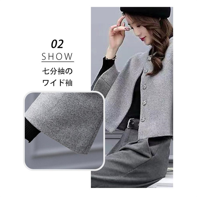 ★袖が七分袖のポンチョ風の程よいボリュームでインナーにゆったりアイテムをチョイスした際に悩むアウター問題が解決