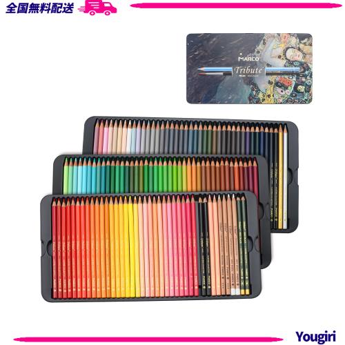 Marco 塗り絵用色鉛筆100色 水性, 大人の色鉛筆 水彩 柔らかい色鉛筆 持ち運び 水溶性色鉛筆 毛筆と鉛筆削り付 水彩 色鉛筆 高級 発色の