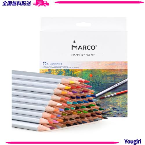 Marco水溶性色鉛筆 72色 水彩色鉛筆 標準水性色鉛筆 六角軸 毛筆が付き 標準72色 可愛い 木製色鉛筆 こどもえんぴつ 美術学生 初心者 面