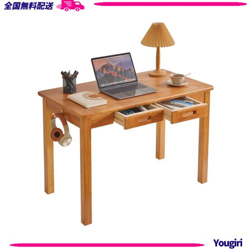 Aibiju 天然木 机 デスク パソコンデスク 幅100奥行55高さ75cm ライティングデスク 引き出し付き 食卓 ダイニングテーブル 木製 モニター