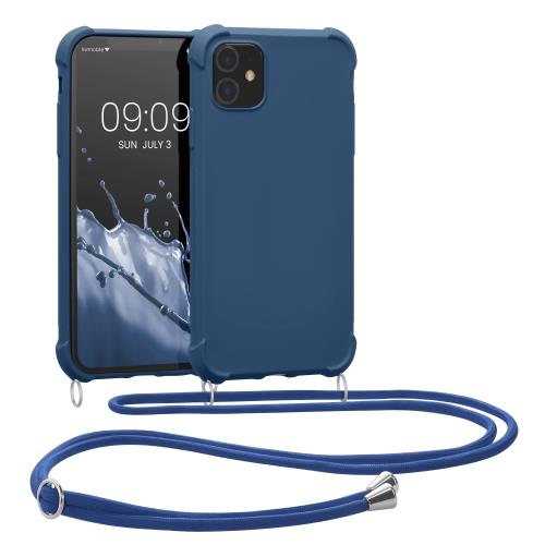 kwmobile スマホショルダー Apple iPhone 11対応 ケース - TPU カバー 肩掛け ストラップ付き 紺色
