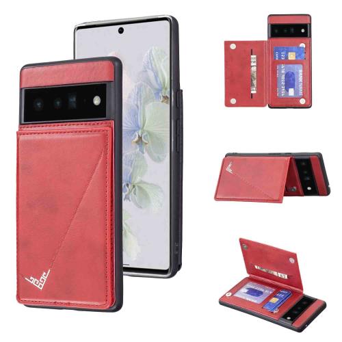Anrek新型 GOOGLE Pixel 6 Pro Softbank 用 背面 カードケース 手帳型 ランヤード付 背面カバー (レッド) グーグル ピクセル6プロ ソフトバンクpixel6pro スマホケース サイドマグネット カード収納 横置き機能 PUレザー 財布型 携帯カバーpixel6pro RED