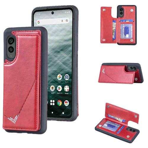 Anrek新型 FUJITSU arrows N F-51C docomo 用 背面 カードケース 手帳型 ランヤード付 背面カバー (レッド) アローズn ドコモf51c スマホケース サイドマグネット カード収納 横置き機能 PUレザー 財布型 携帯カバー 富士通f51c RED