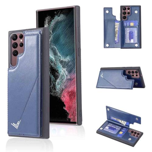 Anrek新型 SAMSUNG Galaxy S22 Ultra 5G 用 背面 カードケース 手帳型 ランヤード付 背面カバー (ネイビーブルー) サムスンs22ウルトラ ギャラクシーs22u スマホケース サイドマグネット カード収納 横置き機能 PUレザー 財布型 携帯カバーgalaxy s22u BLUE