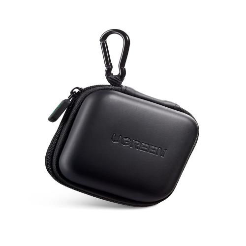 UGREEN イヤホンケース ケーブルカバー ミニボックス 内側ネットポケット付き 充電アダプタ USBメモリ Airpods Bose SD TFカード 鍵など対応 ブラック