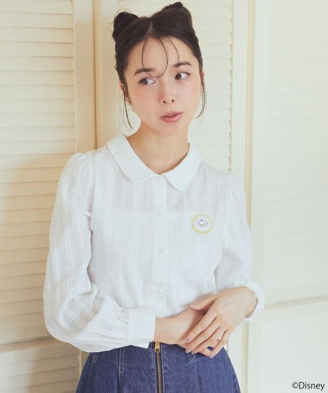 DisneyシリーズからMarieのキュートなワッペンがアクセントのオリジナルブラウス。ソフトな肌触りのコットン100%素材で軽やかに合わせていただける一枚です。繊細なアイレットレースのラインがおしゃれなポイント。丸みのある衿元に肩口ギャザーのふんわりとしたスリーブもポイントです。シンプルながらもさりげないディテールで印象的に魅せてくれる特別感ある一枚です。透け感[あり]
