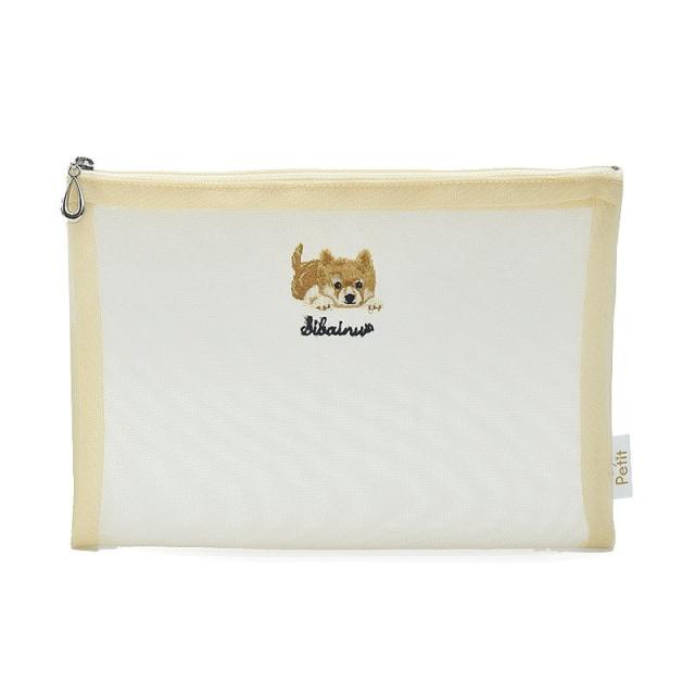 犬猫柄 刺繍 中身が見える【メッシュポーチ】柴犬 シバ犬 小物入れ フラットポーチ ペットグッズ