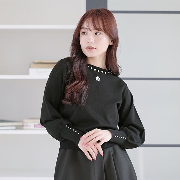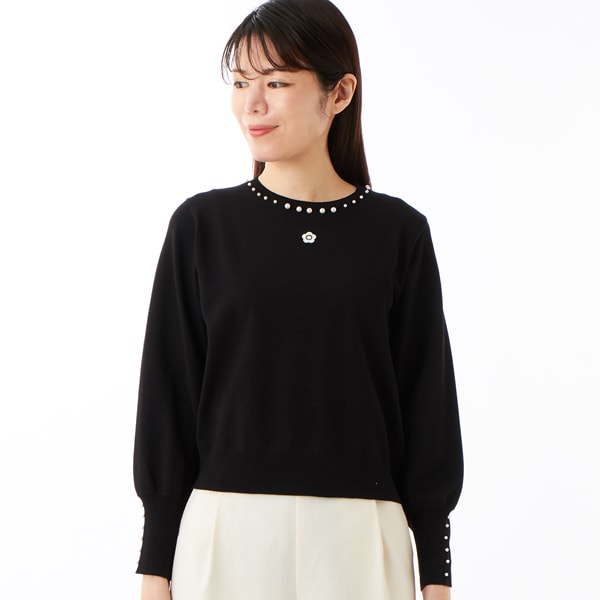 マリークワント(MARY QUANT)/ロングリブパール ニット