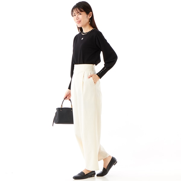 シンプルなボトムスと合わせた、ほど良く上品なコーデがおすすめです。