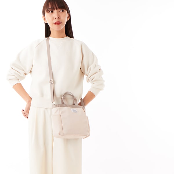 きれい目ポリエステル使用で機能的なデイリートートバッグ。普段使いからお仕事でも活躍してくれます。
