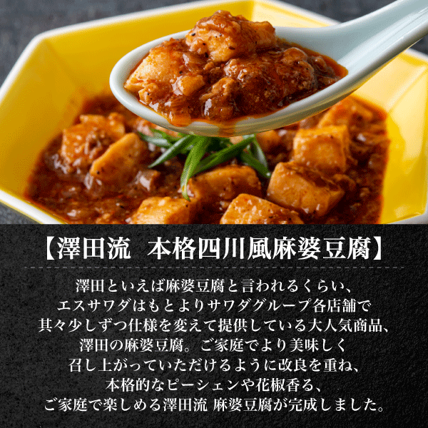 ご家庭でより美味しく召し上がっていただけるように改良を重ね、本格的なピーシェンや花椒香る、ご家庭で楽しめる澤田流 麻婆豆腐が完成しました。