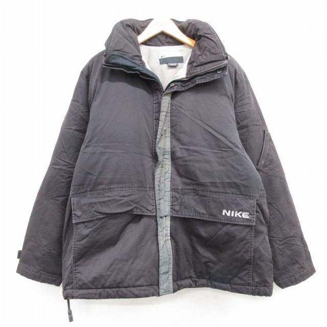 【商品名】 XL★古着 ナイキ NIKE 長袖 ナイロン ジャケット パーカー メンズ 00年代 00s ワンポイントロゴ リバーシブル 大きいサイズ ロング丈 黒 内側フリース【spe】