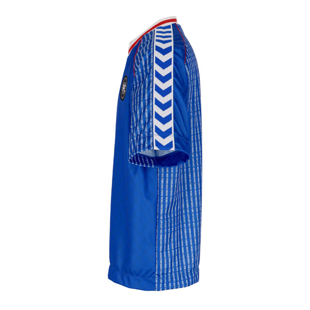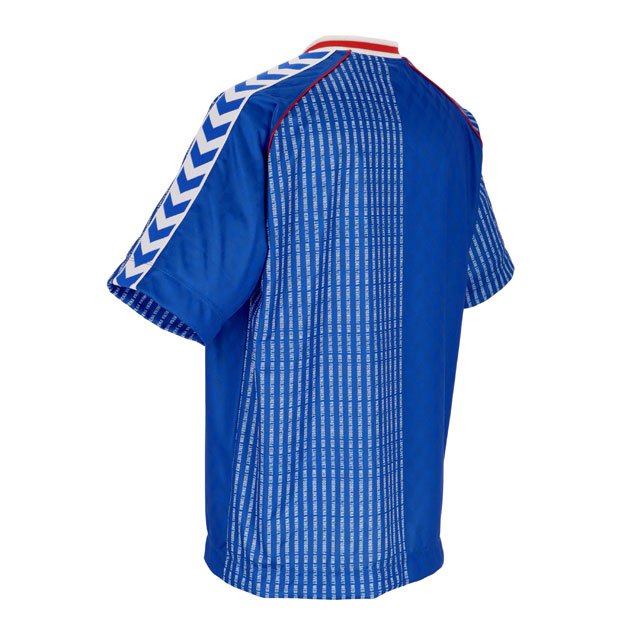 特徴:hummel FOOTBALL CULTUREを表現するライフスタイルカテゴリー。1986年デンマーク代表のユニフォームを連想させるH.FCを象徴するゲームシャツ。