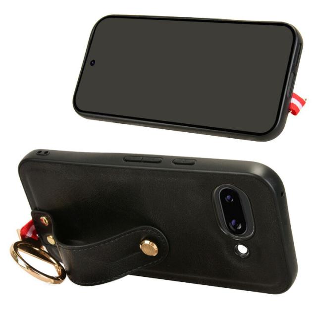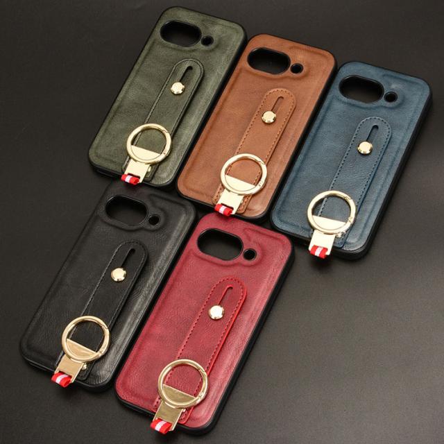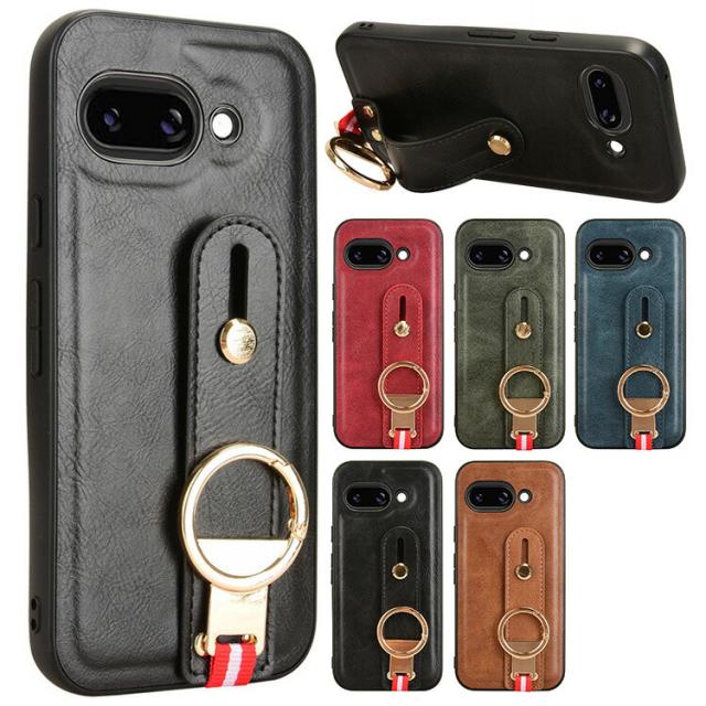 Pixel9a ケース 耐衝撃 カバー PUレザー+プラスチック 持ち手 ベルト 落下防止ベルト リング付き スマホベルト 片手操作 取っ手 シンプル Google グーグル ピクセル9a アンドロイド おすすめ おしゃれ