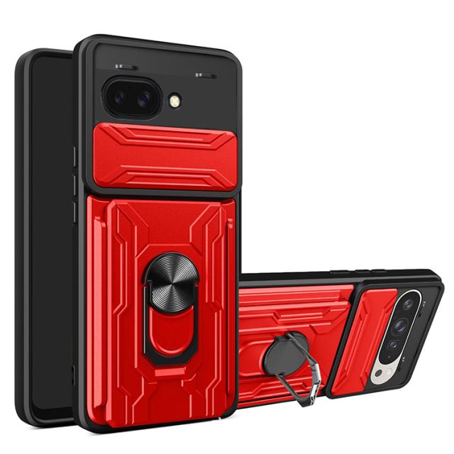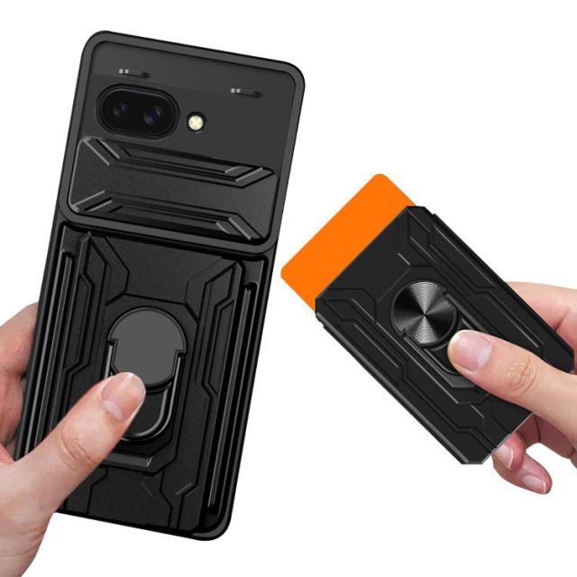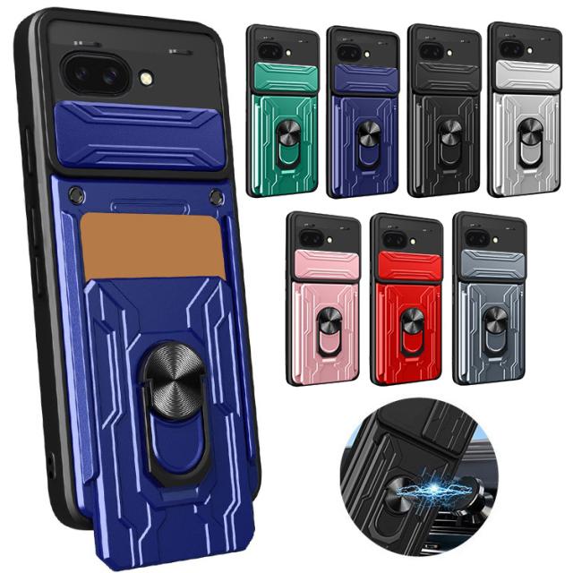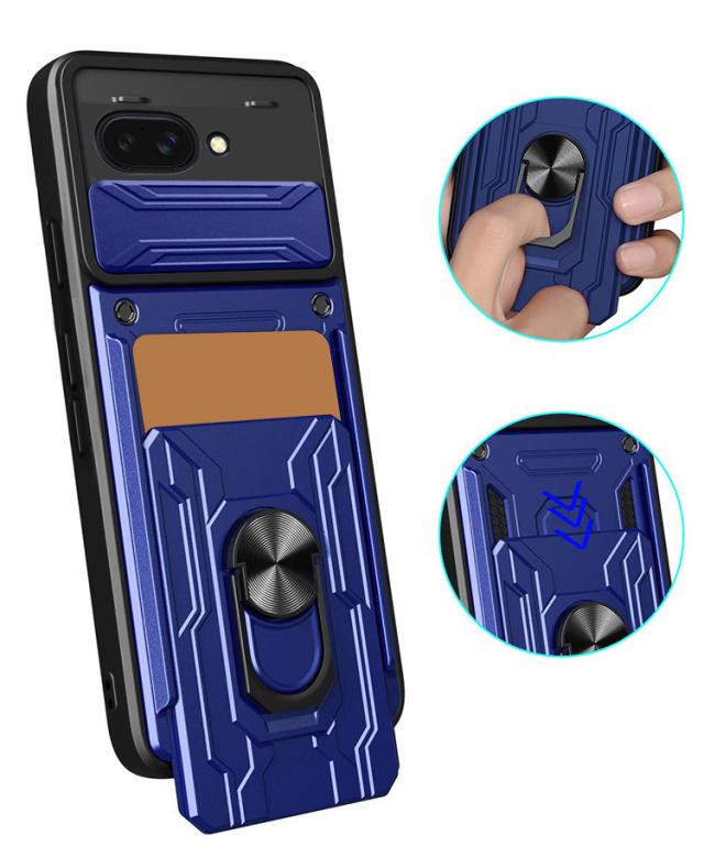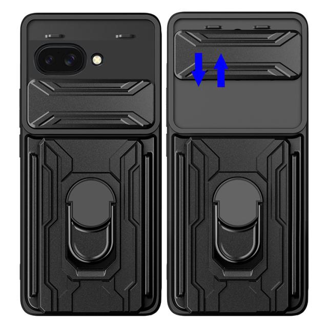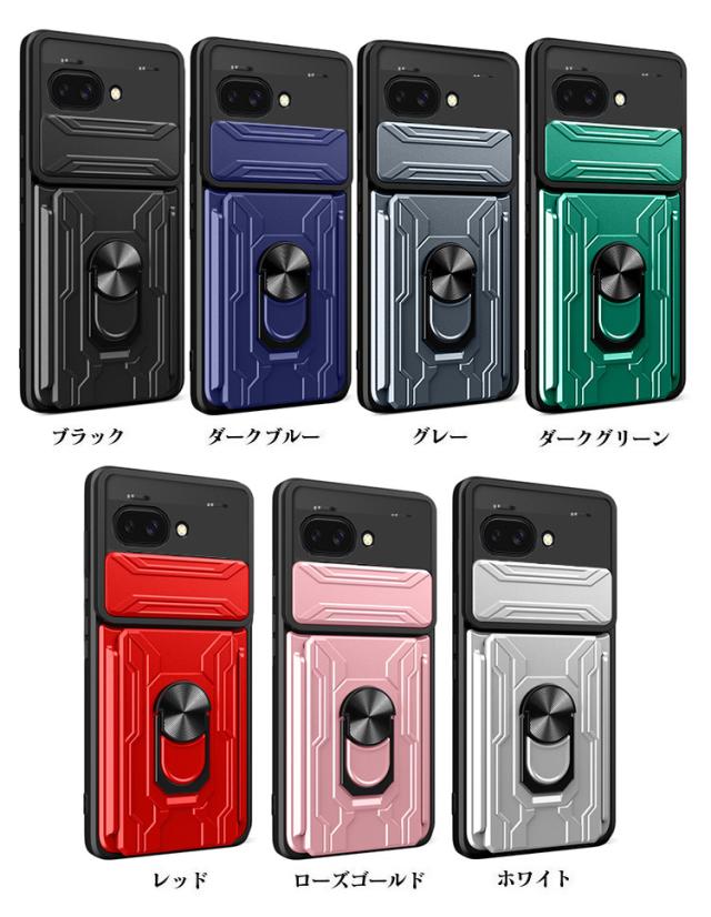 Pixel9a ケース 耐衝撃 カバー スライド式カメラレンズカバー付き レンズ保護 一体型リング付き カード収納 耐衝撃ケース 背面カバー ストラップホール付き Google グーグル ピクセル9a アンドロイド おすすめ おしゃれ