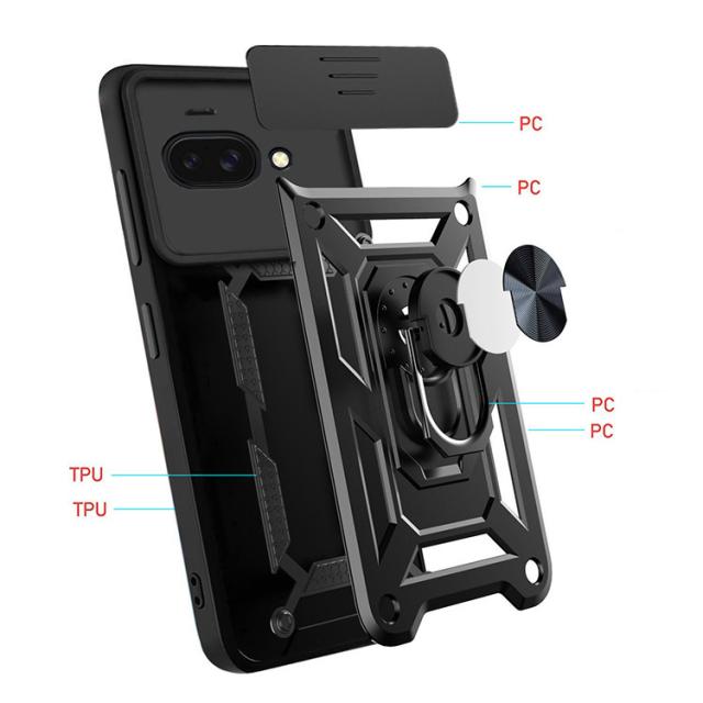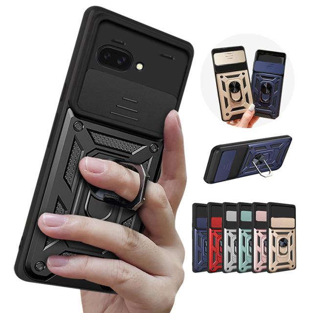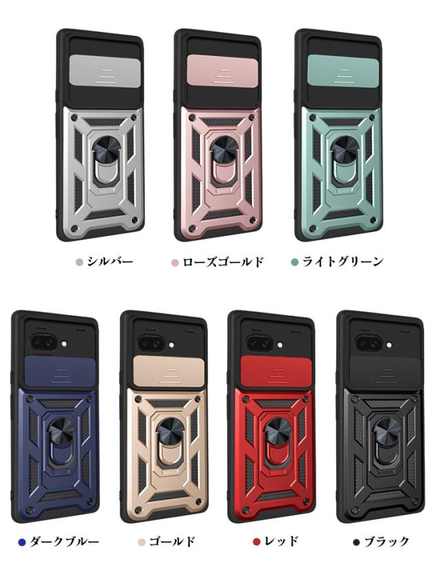 Pixel9a 耐衝撃 ケース カバー スライド式カメラレンズカバー付き レンズ保護 一体型リング付き マグネット式車載ホルダー対応 2重構造 ストラップホール付き Google グーグル ピクセル9a おすすめ おしゃれ スマフォ/スマホケース/カバー