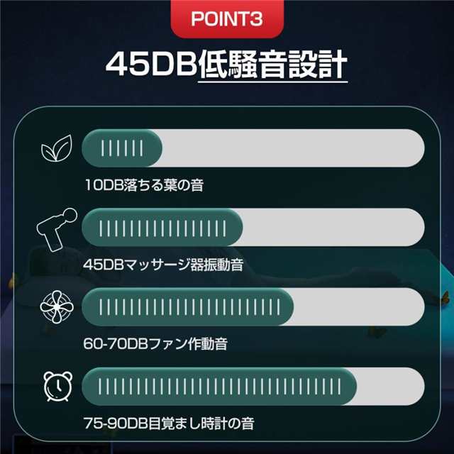 ・1800mAh大容量バッテリーはフル充電で約三週間程度(毎日30分)使用することが可能です。作動音(35-50dBで)は非常に低騒音となっており、周りの方にご迷惑がかからないように設計されました。