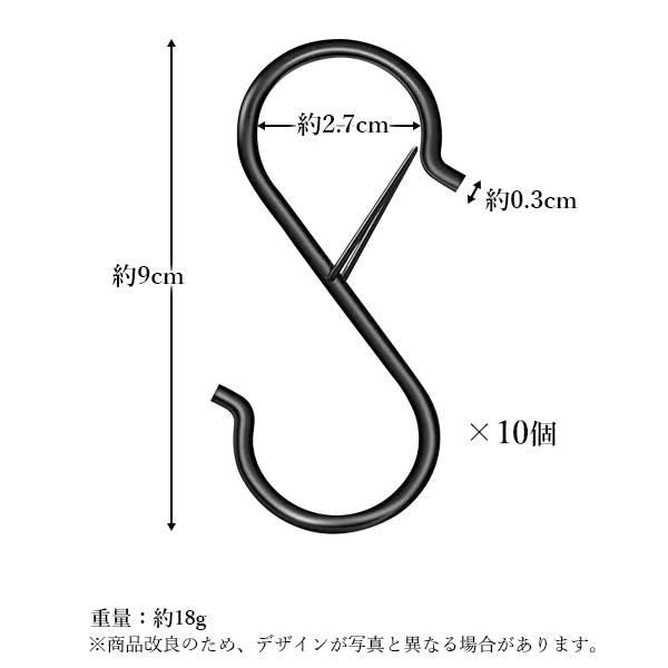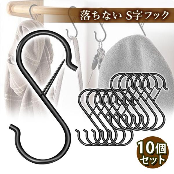 S字フック おしゃれ 落ちない 大 10個セット ストッパー付き キッチン 浴室 お風呂 ラック (管理S) 送料無料