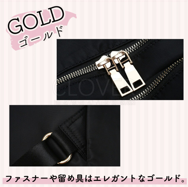ファスナーや留め具は上品なゴールドカラーで統一
