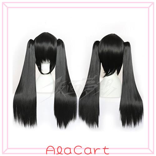 ◆商品名:人気耐熱コスプレウィッグ◆60cm真っ黒系ツインテールかつら cosplay wig 変装用ウィッグ 専用ネット付adcos