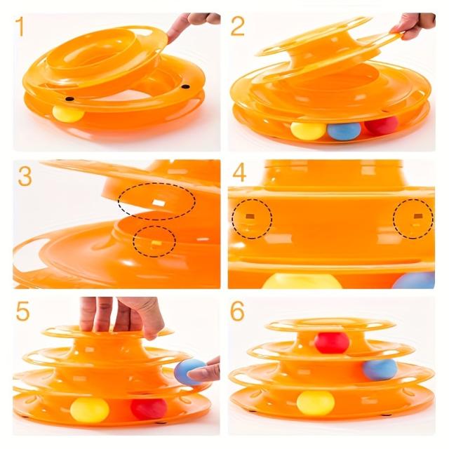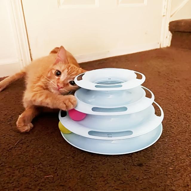 3段回転式キャットタワー、カラフルボール、室内用猫おもちゃ