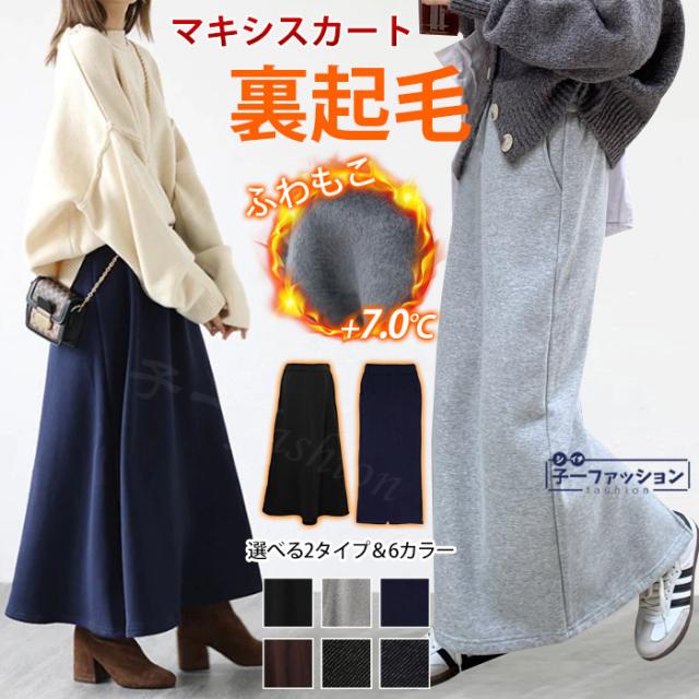 <1点あたり1,690円!2点同時購入&クーポン利用で>裏起毛 マキシスカート ロングスカート 冬新作 レディース タイトスカート 温かいスカート フレアスカート ミモレ丈 マキシ丈 ゆったり 裏シャギー ロング Aライン スカート ハイウエスト ウエストゴム 秋冬