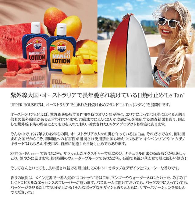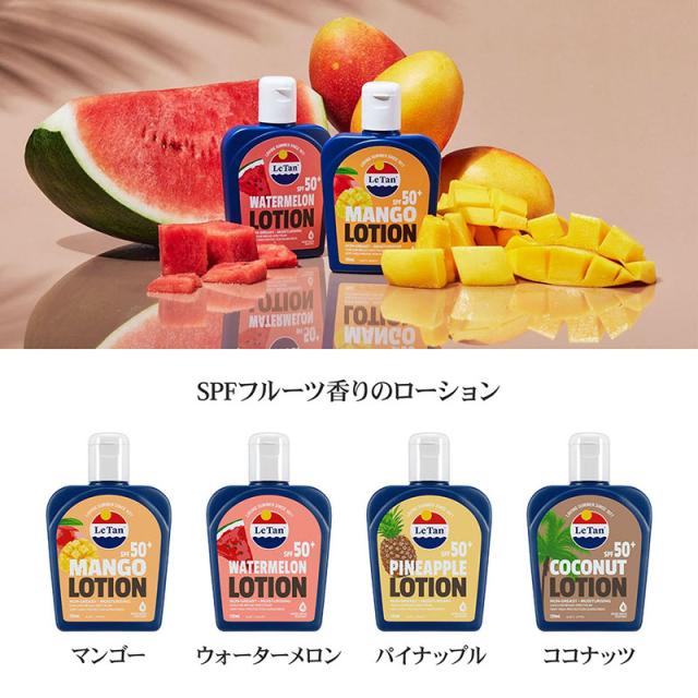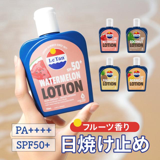 サンスクリーンローション SPF50+ PA++++ 日焼け止め UVクリーム 日焼け止めクリーム 125ml ココナッツ バイナップル ウォーターメロン 西瓜 スイカ マンゴー ローション キッズ 子供 ファミリーで使える ひやけどめ 日焼け 男性 女性 こども キッズ 海 ギフト Le Tan