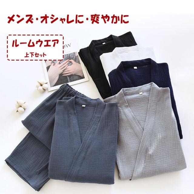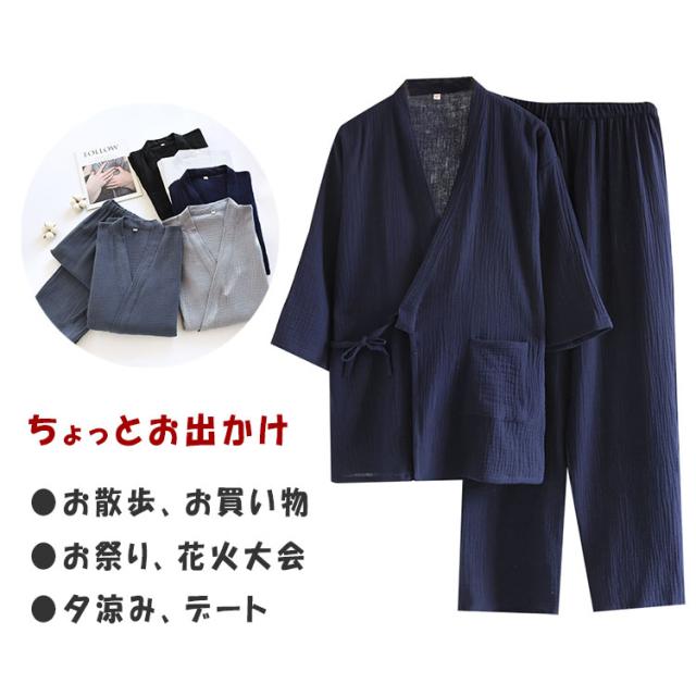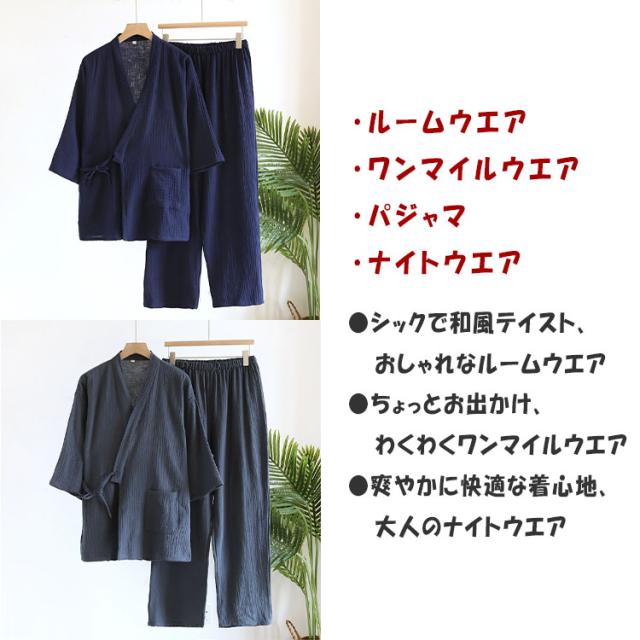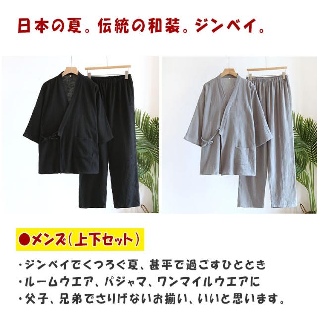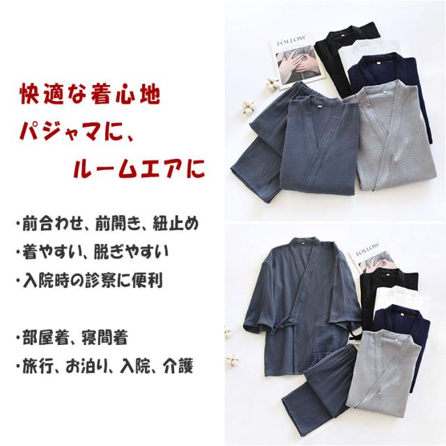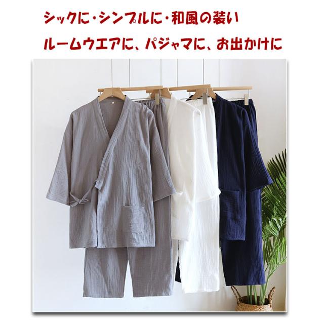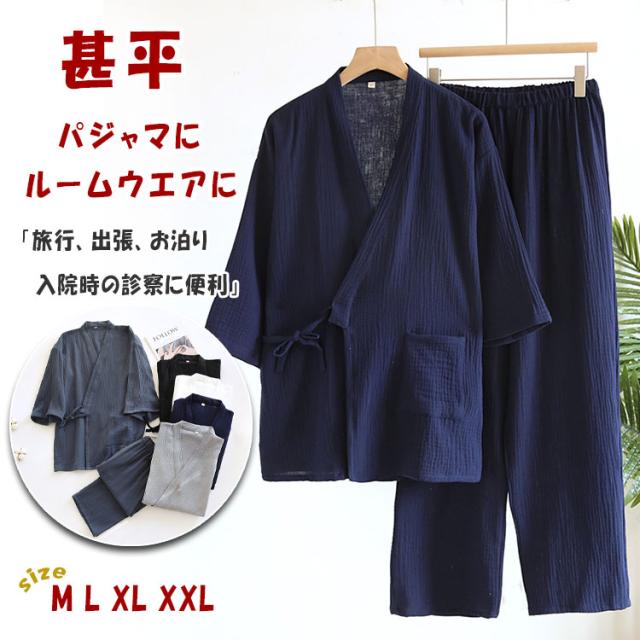 パジャマ 甚平風 ルームウエア 前開き 入院 メンズ 上下セット 送料無料 甚平風メンズパジャマ 伝統的 和装 甚平風ルームウエア 部屋着 寝巻き ワンマイルウエア セットアップ 柔らか 伸縮性 優しい着心地 甚兵衛 誕生日 父の日 プレゼント