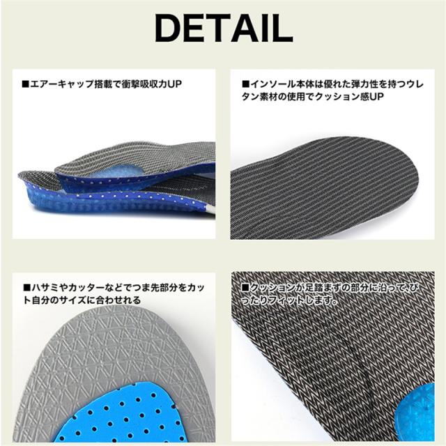 インソール 中敷き 衝撃吸収インソール エアーキャップ 安全靴 革靴 スニーカー ブーツ 靴ケア用品 サイズ調整可能 防臭加工 アップシューズ 野球用 トレーニングシューズ かかと スピードUP アーチサポート 足底筋膜炎 o脚 扁平足 膝痛 腰痛
