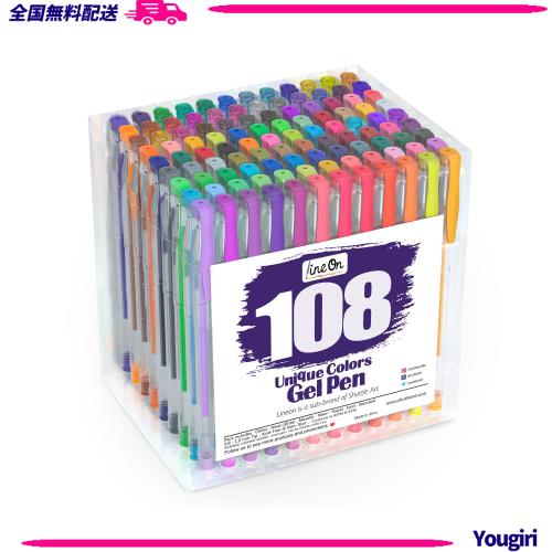 Lineon ジェルボールペン カラーペン 108色セット 水性 カラーボールペン ゲルインク 耐光 耐水 大人の塗り絵 イラスト お絵描き 落書 ス