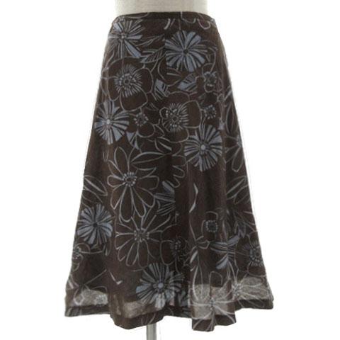 【中古】ヴォイスメール VOICEMAIL スカート 裾フレア ミディ丈 日本製 リネン混 花柄 茶 ブルー系 ブルーグレー 黒