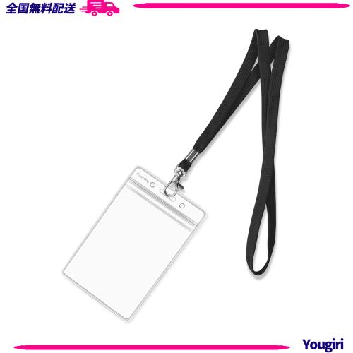 Fushing 50個 ブラッククリア名札ホルダー+ネックストラップセット 縦 (S)