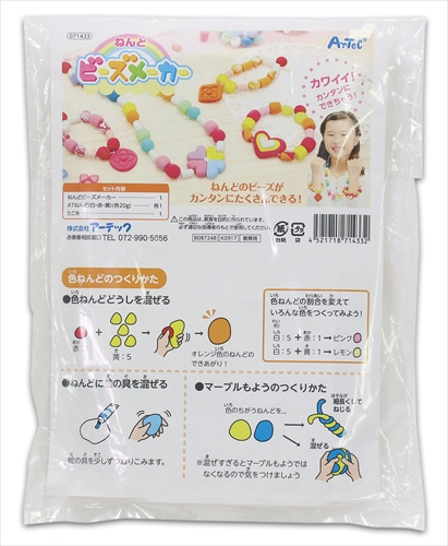 セット内容:ねんどビーズメーカー×1、ATねんど(白、赤、黄)×各1、たこ糸×1